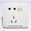 帶燈插座的指示燈也有兩種,是氖燈和LED燈,氖燈都在按鈕的上面,向上按的時候看不到氖燈,插座不通,向下按的時候氖燈亮,指示插座工作;LED燈在按鈕的正面,不論開關在什么狀態都可以看到,按鈕向下按的時候LED燈亮,插座有電。