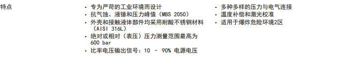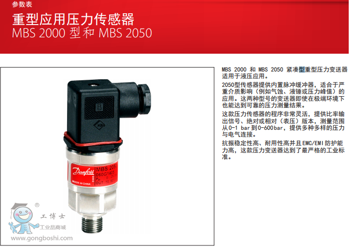 丹佛斯Danfoss MBS 2050, 按比率輸出帶脈沖緩沖器的緊湊型壓力變送器