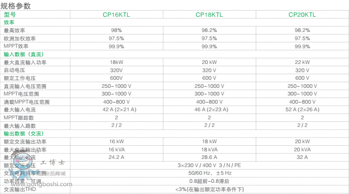 科陸:CP16KTL三相商用逆變器(雙路MPPT)