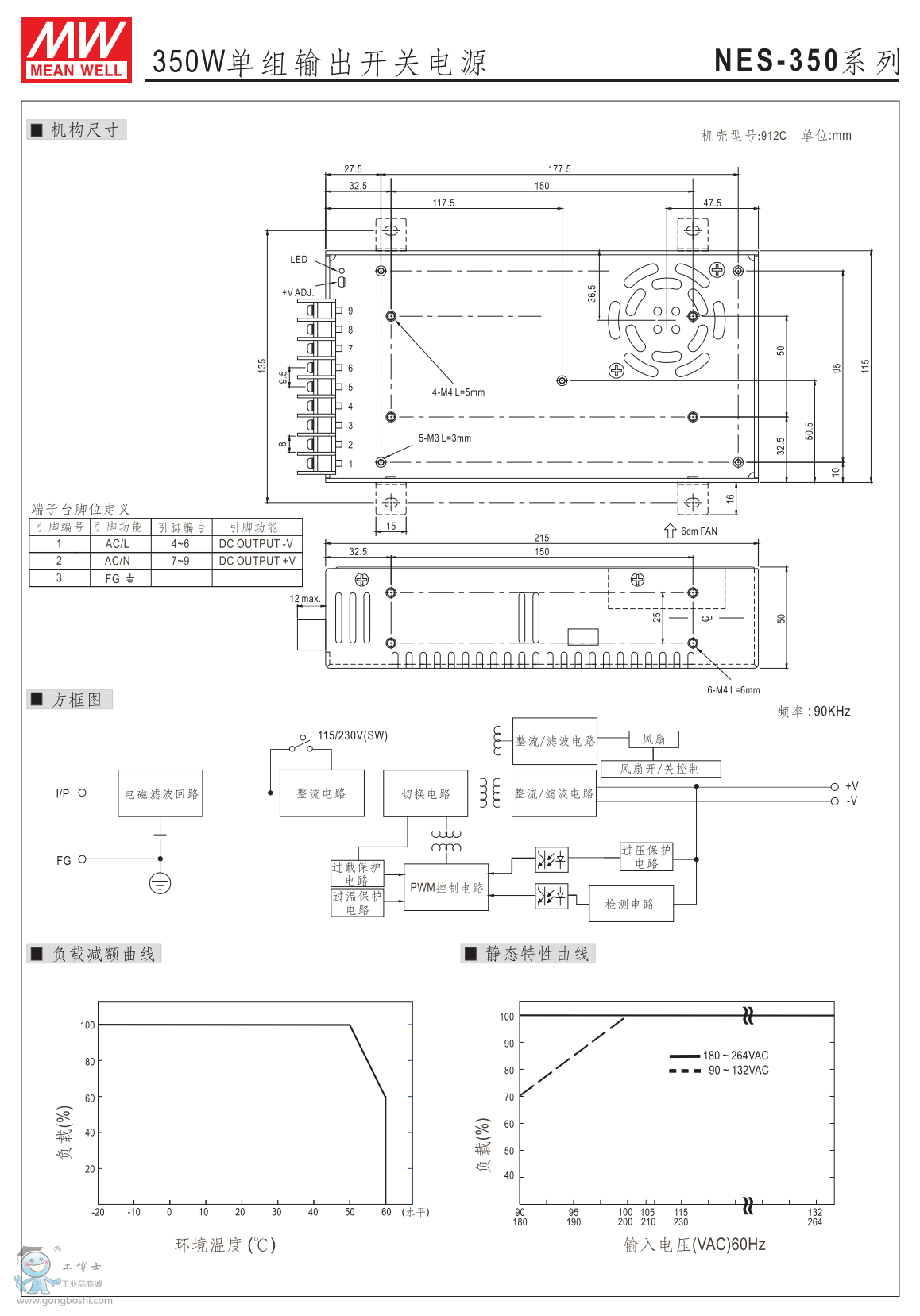 臺灣明緯開關電源NES-350-24經濟網殼型 |