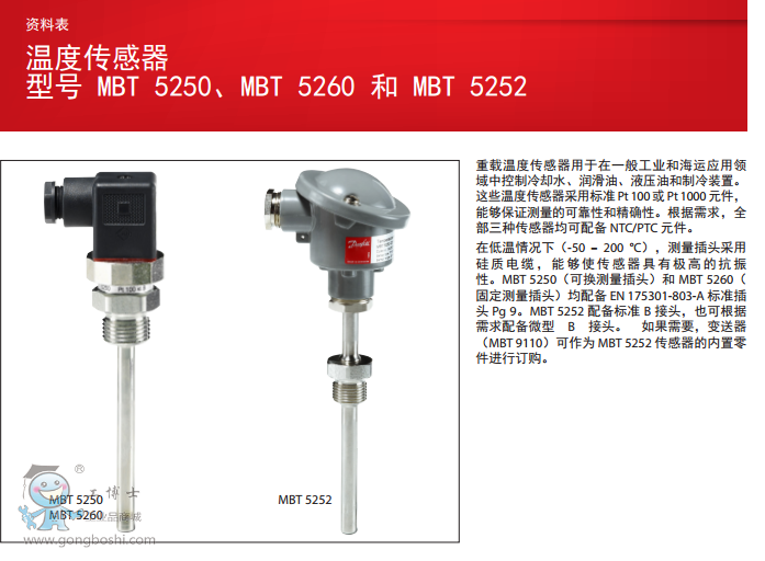 MBT 5250 是一款重工況溫度傳感器,可用于控制常規(guī)工業(yè)和海上應(yīng)用中的冷卻水、潤(rùn)滑油、液壓油和制冷系統(tǒng)。
