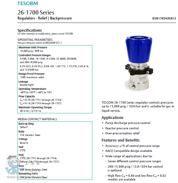 TESCOM 26-1700系列 背壓調壓閥-艾默生EMERSON
