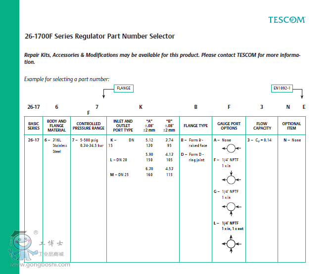 • Compatible with the TESCOM Air Actuator and ER5000 Electropneumatic Controller for remote control