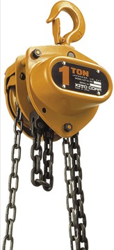 在下降操作時,當重物下降至鏈條長度時,鏈條擋可阻止鏈條繼續下降,