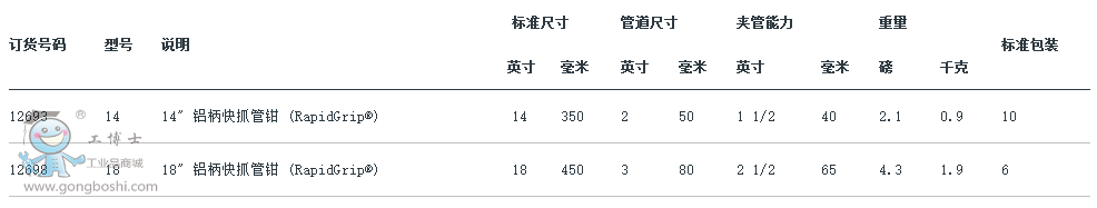 里奇 鋁柄快抓管鉗 (RapidGrip®) ridgid工具 美國艾默生