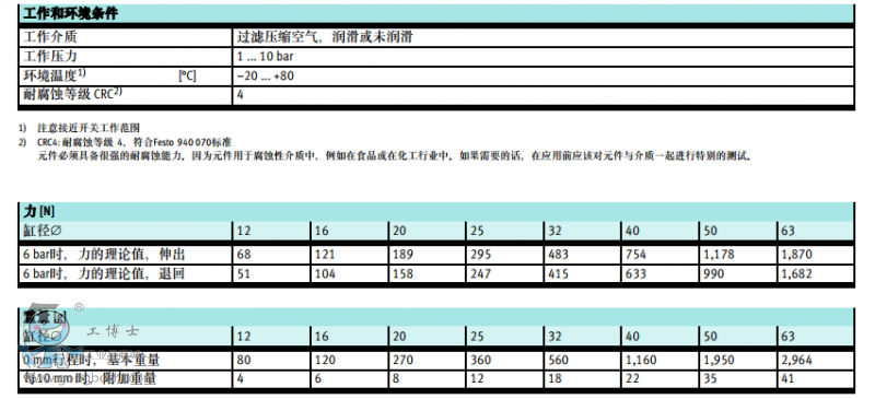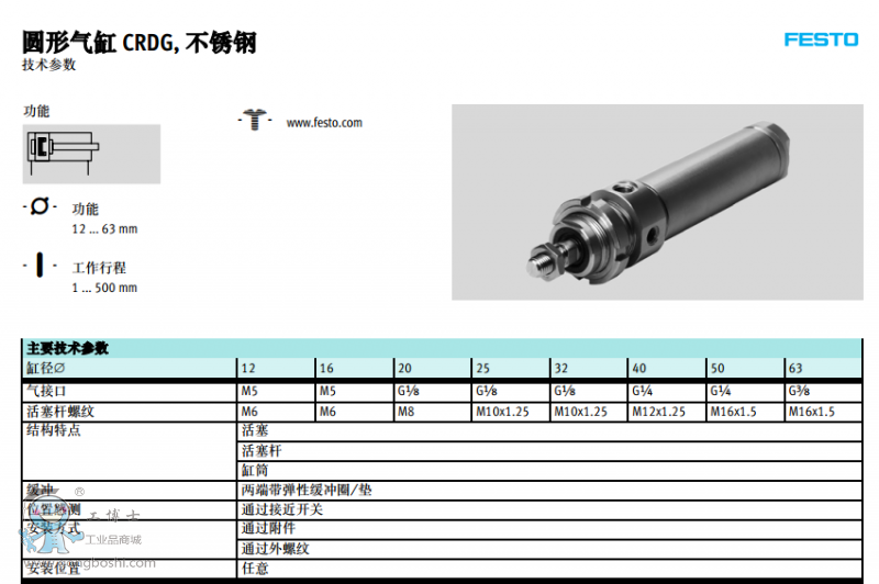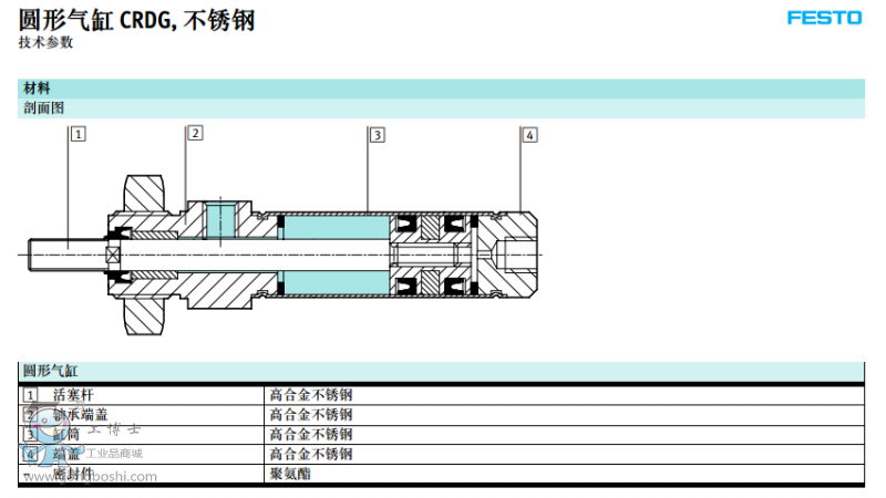 Festo不銹鋼氣缸使用了高耐受性材料,例如1.4301和1.4401。