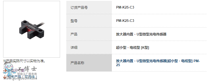 PM-K25-C3松下放大器內(nèi)置 U型微型光電傳感器【超小型 電纜型】 |
