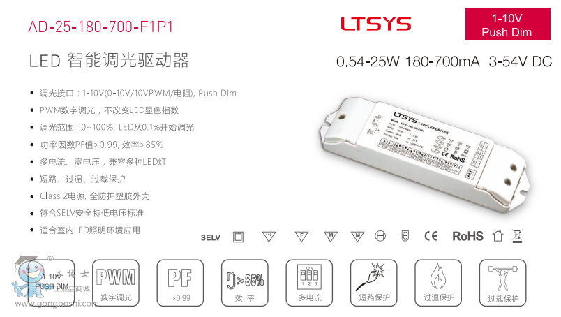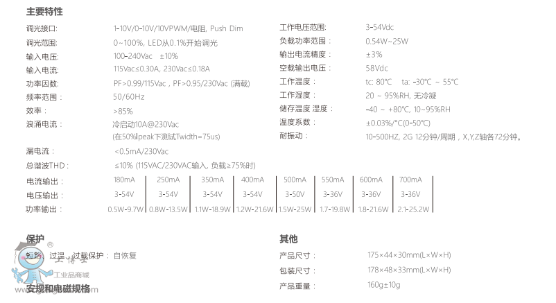 雷特LED調光電源AD-25-180-700-F1P1 25W