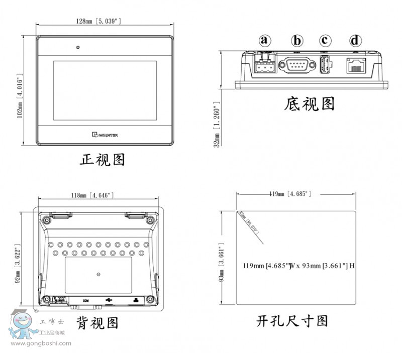 3.威綸通觸摸屏MT系列MT8051iP 產品尺寸: