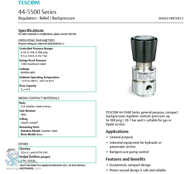TESCOM 44-5562V24A,44-5562V24F,44-5511T24A,44-5511T24F 背壓調(diào)壓器