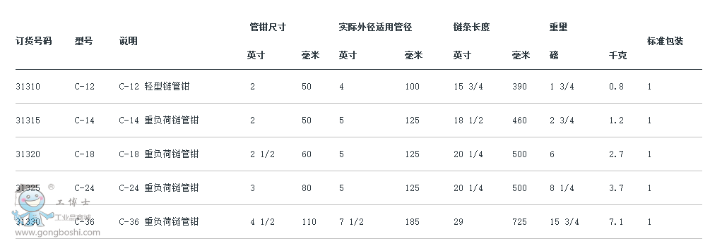 輕負荷型則為單片合金鋼鍛造手柄和下顎鉗,適用于狹窄區域的管路工作。