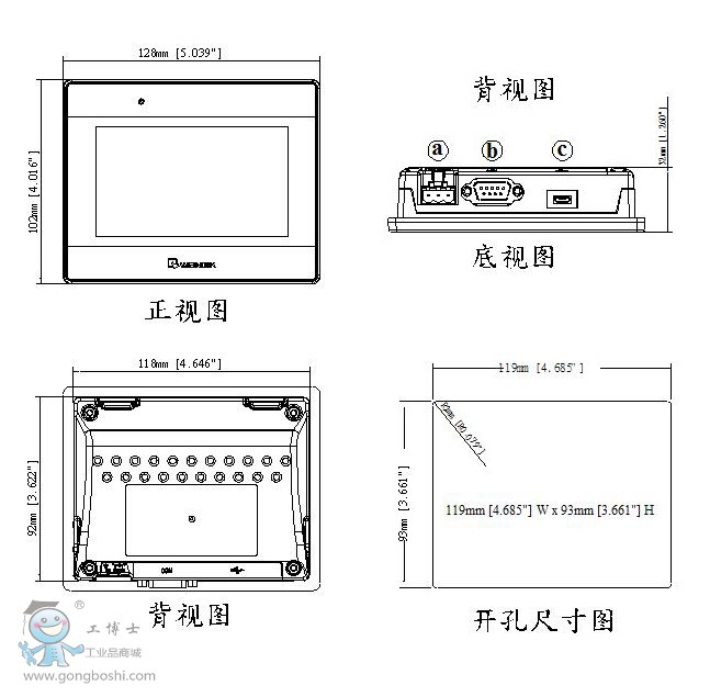 3.威綸通觸摸屏MT系列MT6051iP產品尺寸: