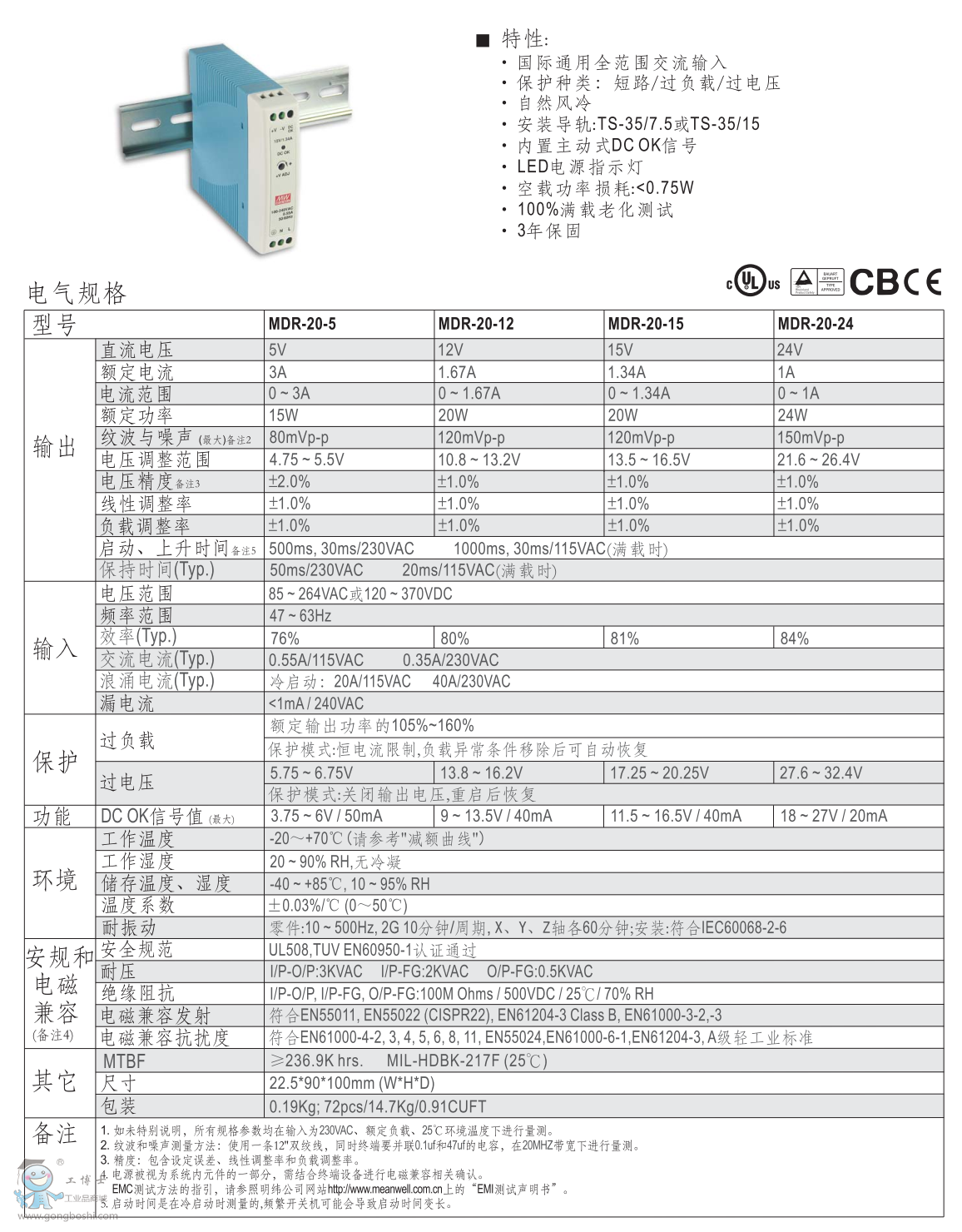 明緯導軌電源MDR-20-24 24V1A |
