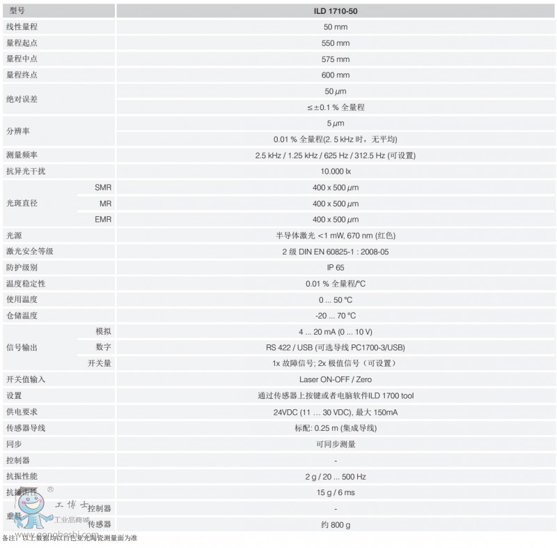 optoNCDT1710-50/2210激光位移傳感器質量保證