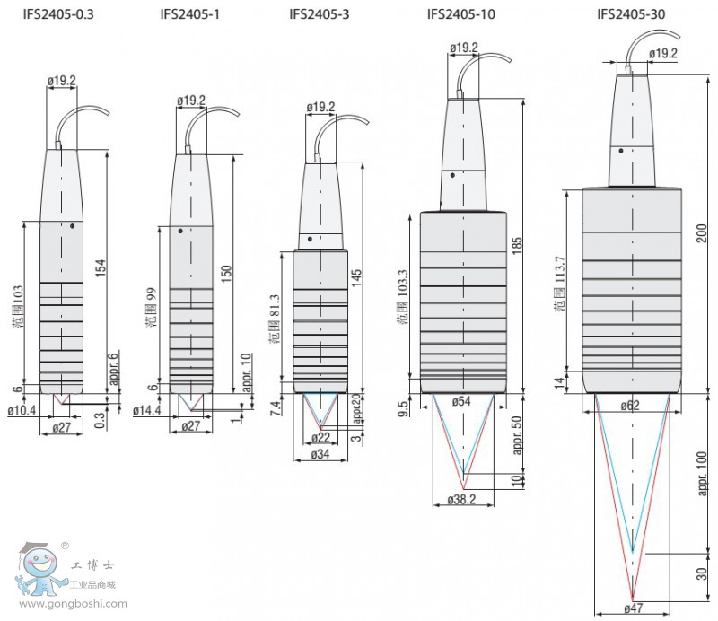 IFS2405系列光譜共焦式傳感器是專門為高精度要求的測量任務而設計的。該系列擁有極高的敏感度,較大的安裝傾角和安裝距離,使它可用于多種應用場合。除了反光與透明表面的距離測量以外,該傳感器還可以用于單向測量清潔薄膜,板材或多層結構的厚度。