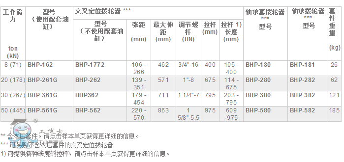 BHP-系列,交叉定位拔輪器套件 液壓拉馬