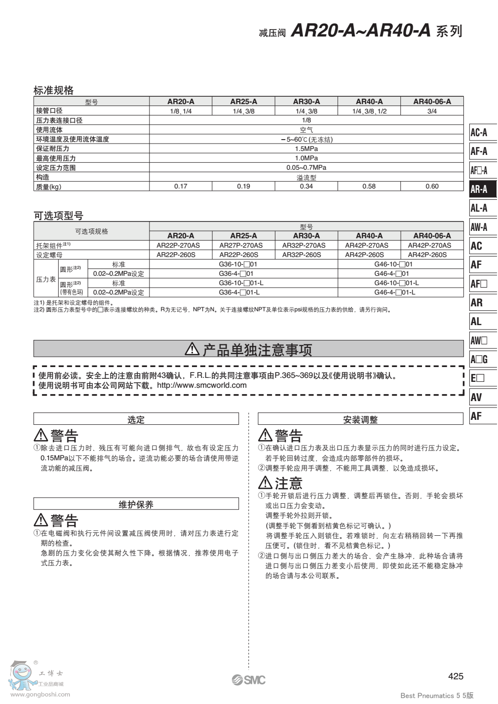 日本SMC AR10-AR40-A 系列 模塊式 減壓閥