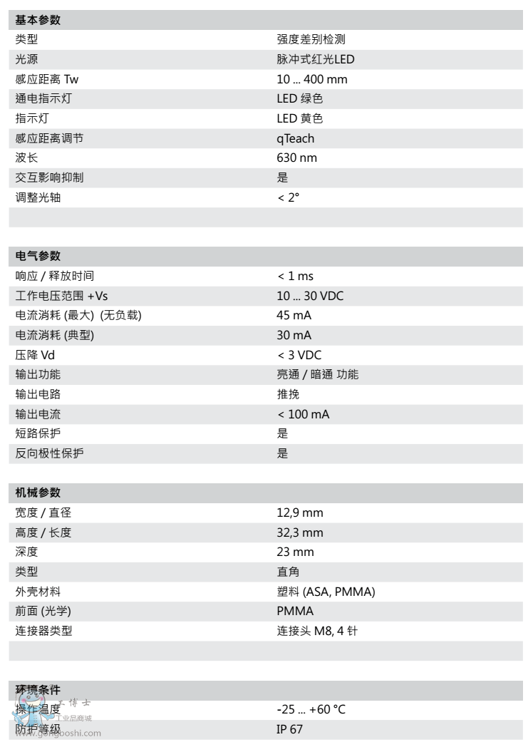 Baumer/堡盟300.ZR-11128014漫反射式光電傳感器 衛生級 |