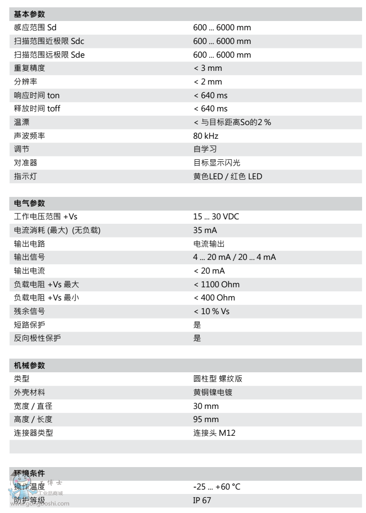 Baumer/堡盟UNAM 70I6131/S14超聲波測距傳感器 |