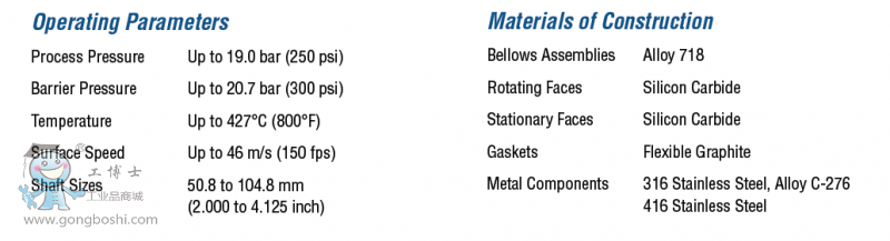 • Laser-applied wavy face technology creates a gas film barrier between the seal faces to provide non-contacting,low drag, low energy consumption performance.