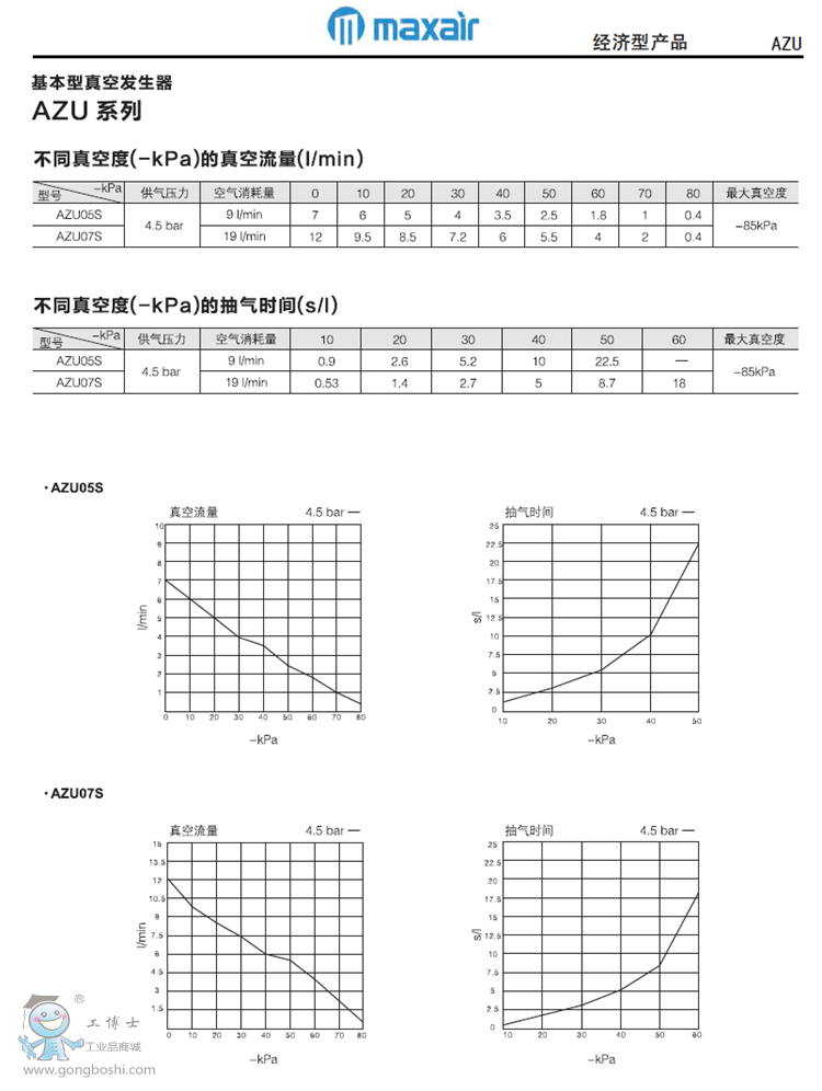 德國MAXAIR 基本型真空發(fā)生器AZU系列 |