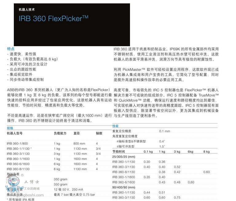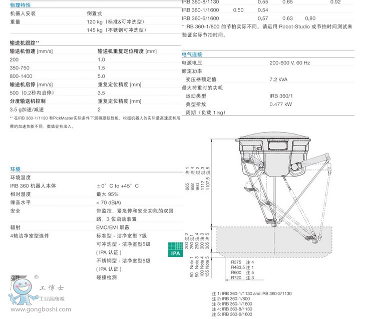 ABB機器人 IRB 360-1/1600 負載1kg 裝配 包裝 拾料機器人