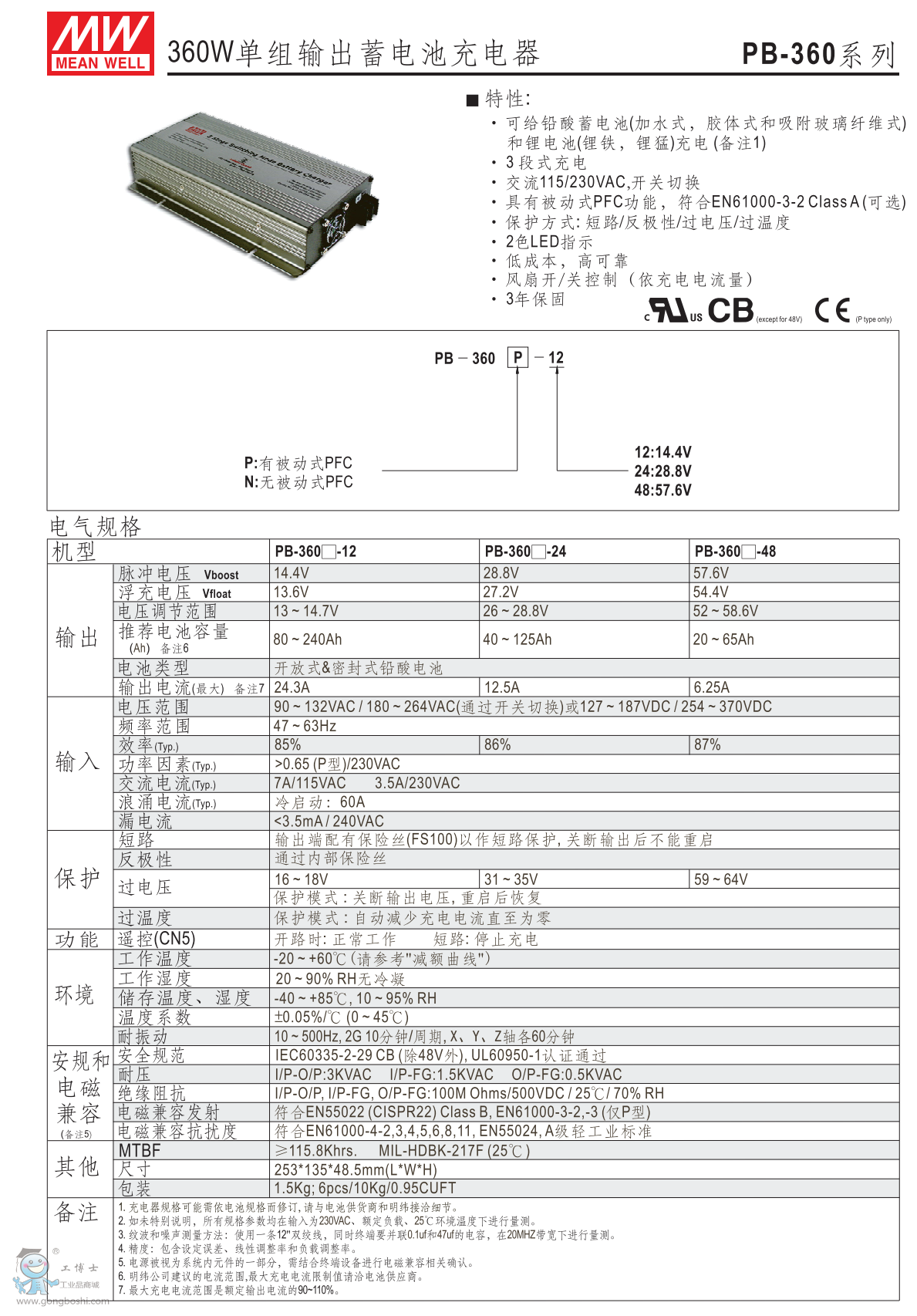 臺灣明緯PB-360-24 蓄電池充電器 |