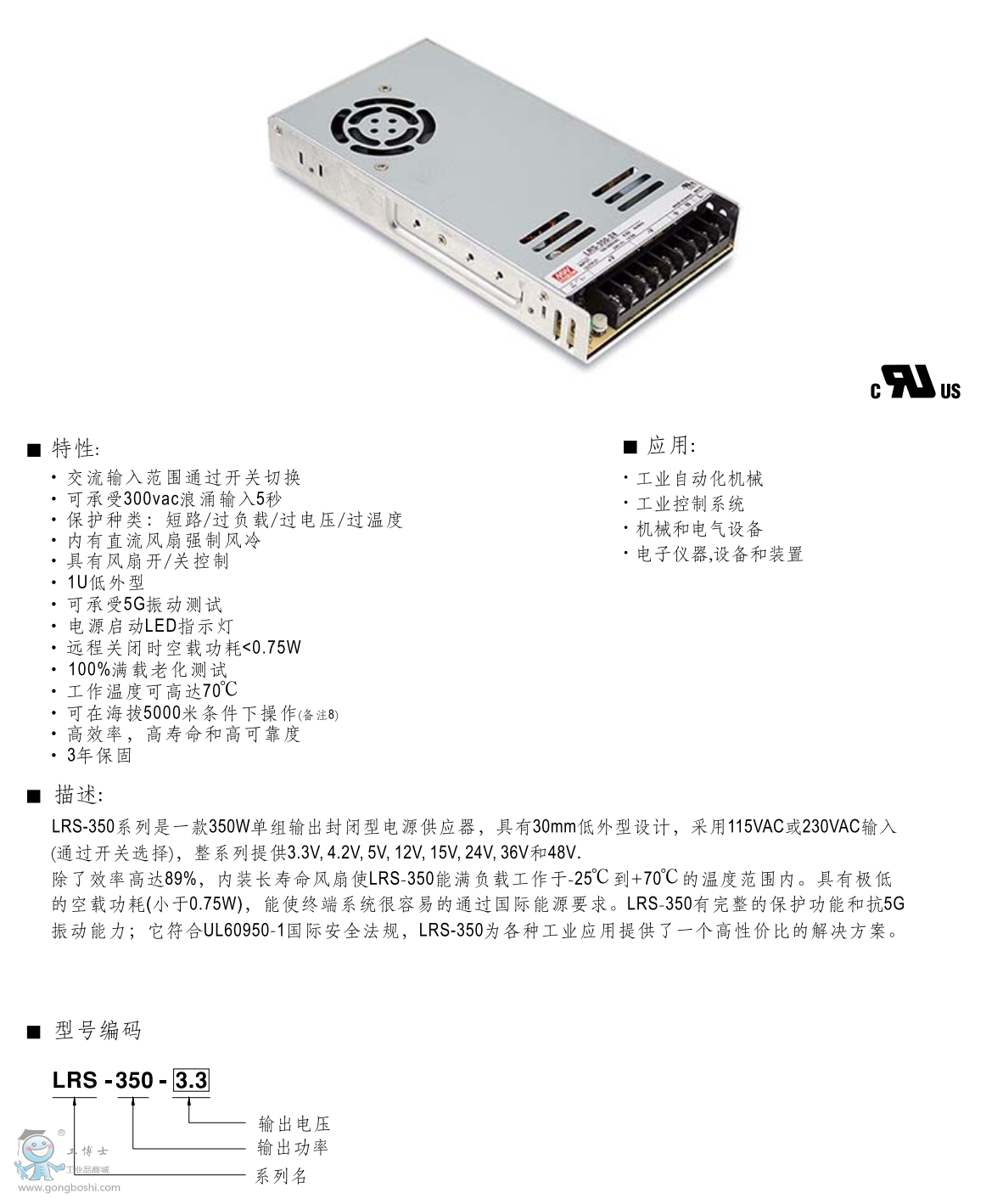明緯開關電源LRS-350-24 24V14.6A 供應 |