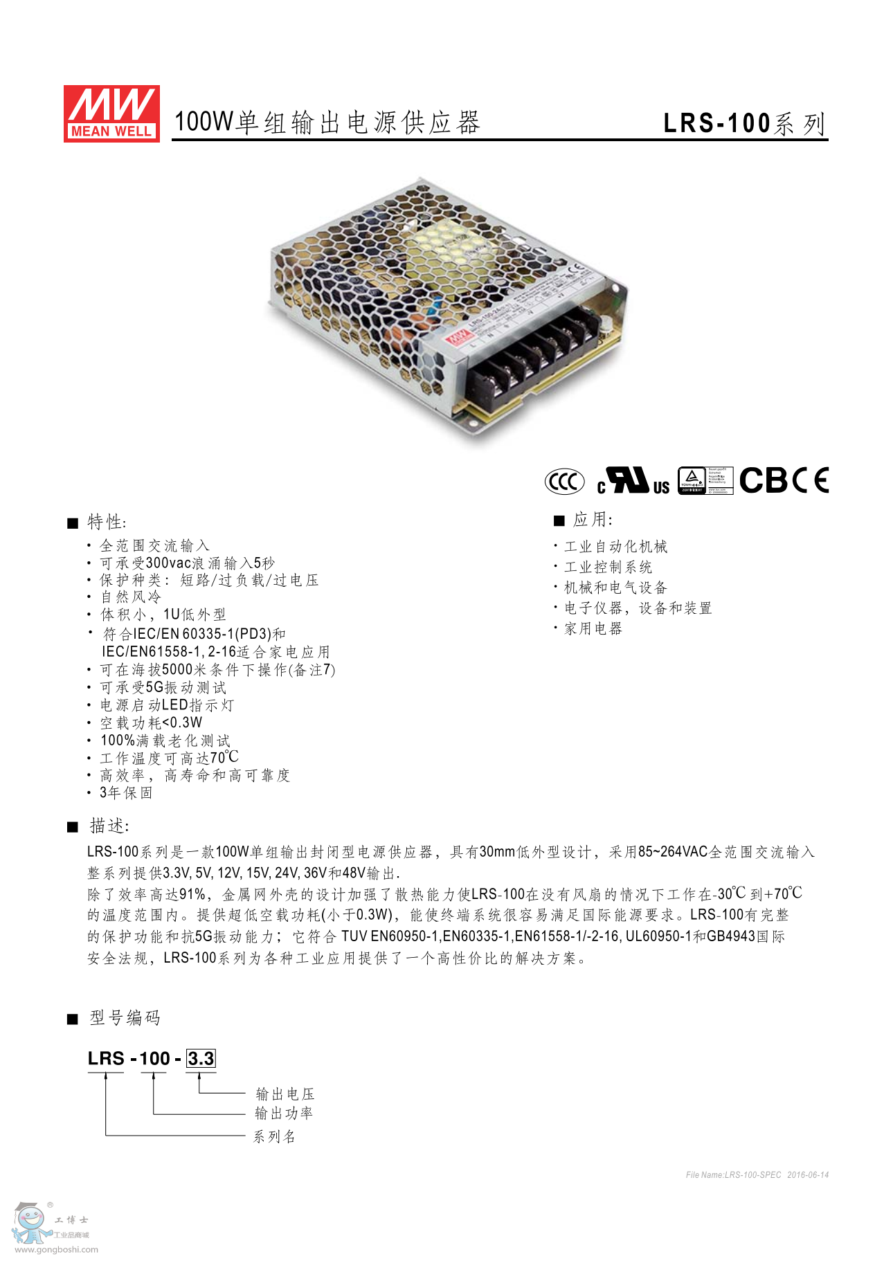 明緯開關電源LRS-100-24 24V4.5A 供應 |