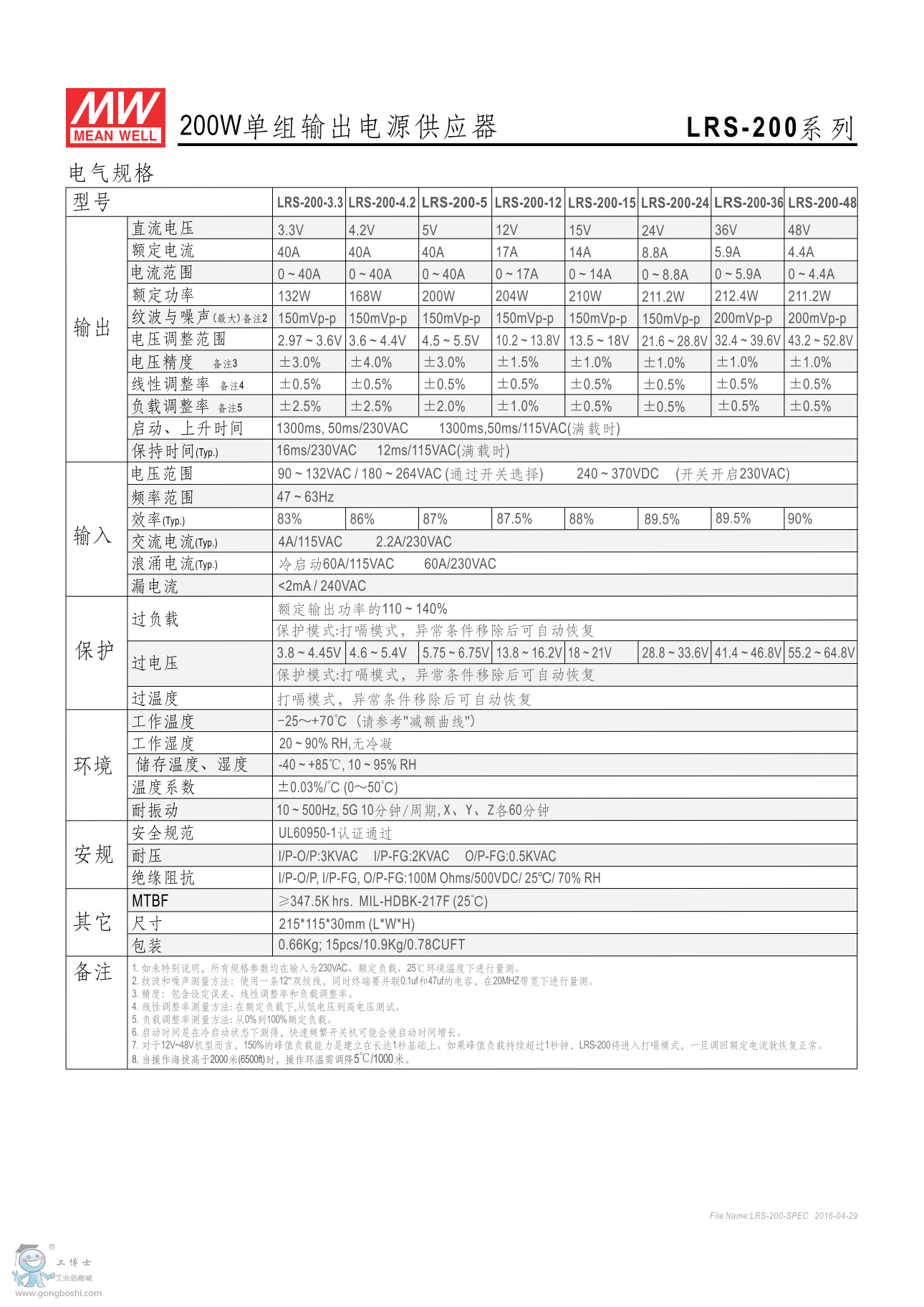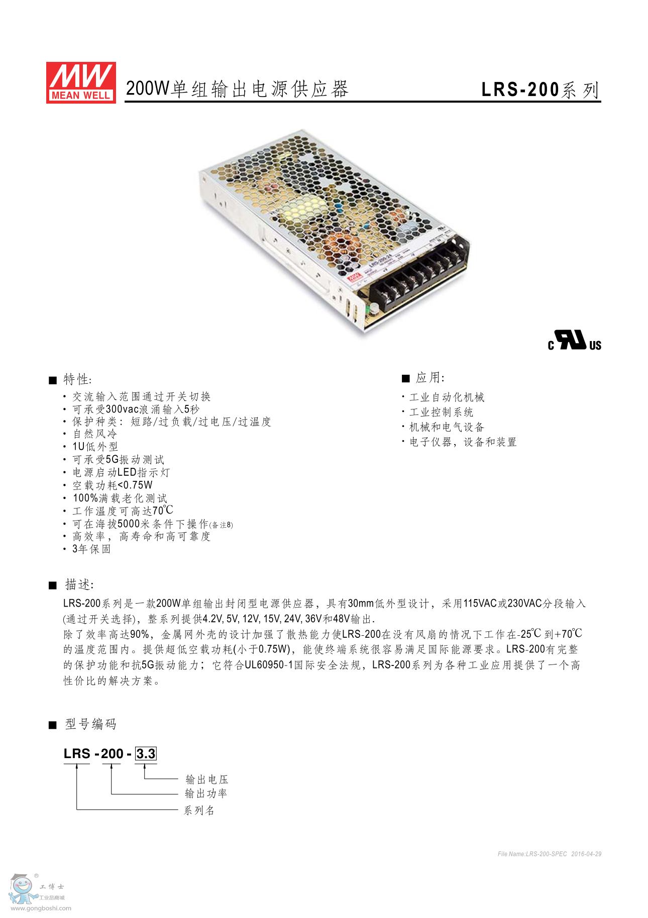 明緯開關電源LRS-200-24 24V8.8A 供應 |