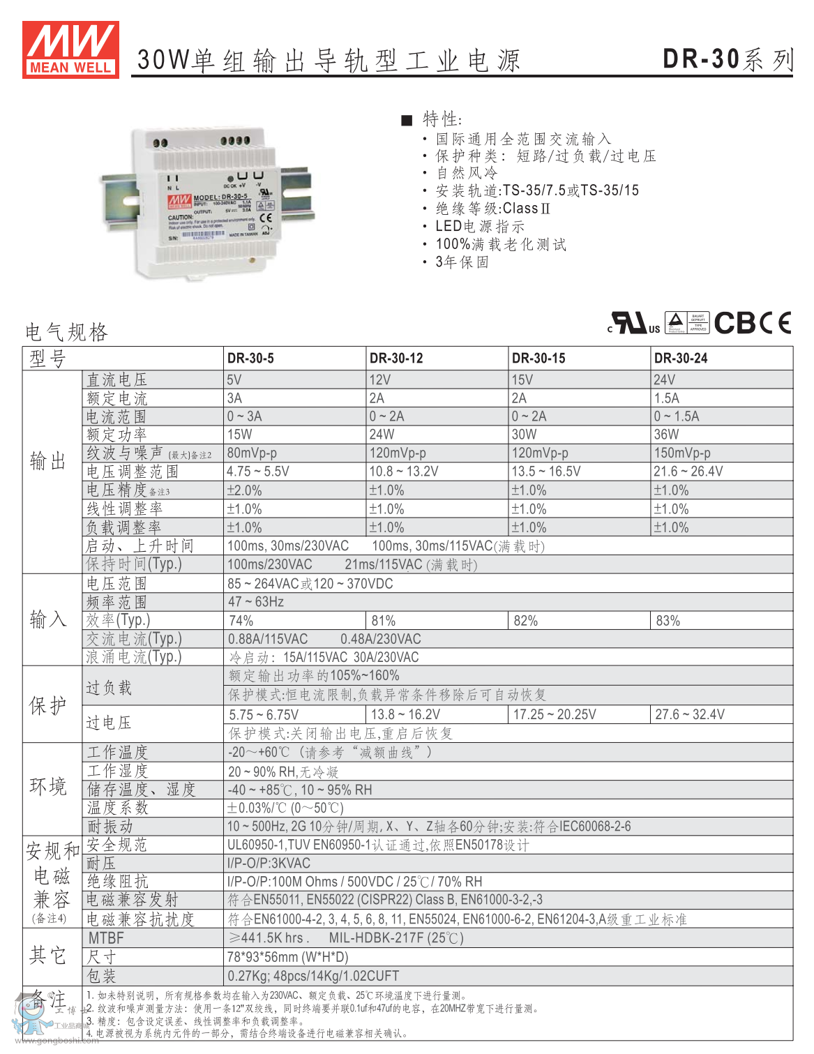 空載待機消耗瓦數<0.5W (DR-15) 空載待機消耗瓦數<1W (DR-100)