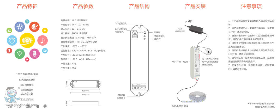 WiFi-101-RGBW wifi Led控制器 |