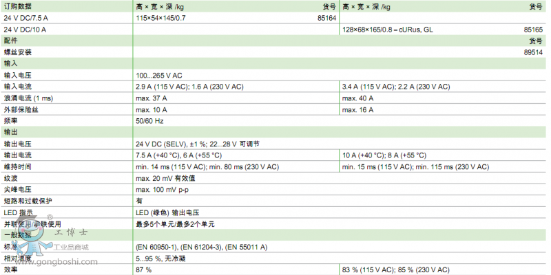 MURR 開關電源MCS-B 24V DC/7.5A 85164