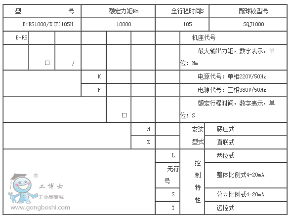 產(chǎn)品名稱:B+RS1000/K(F)105H型電動執(zhí)行機(jī)構(gòu)