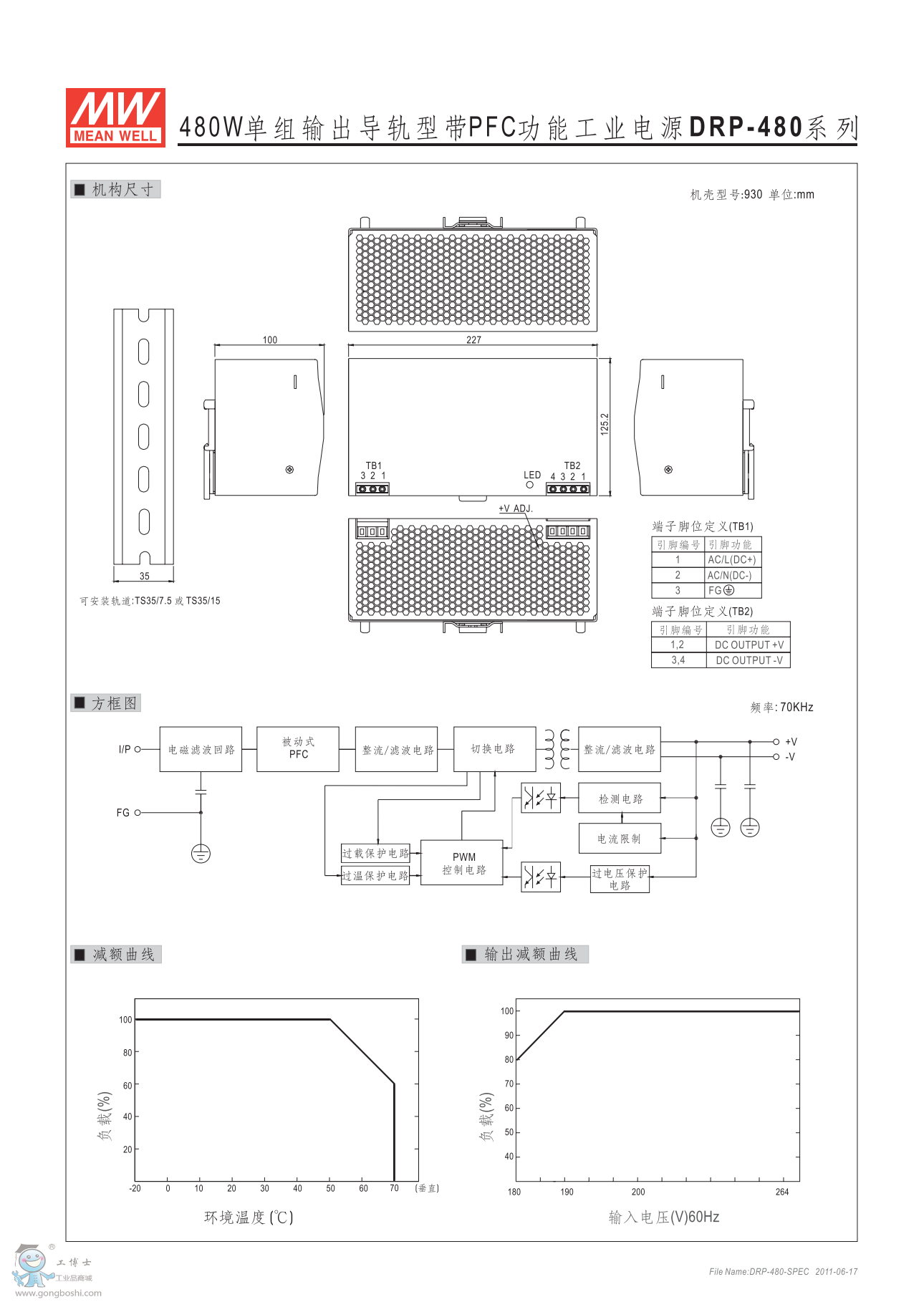 臺灣明緯導軌電源DRP-480-48 48V10A 有PFC功能 |