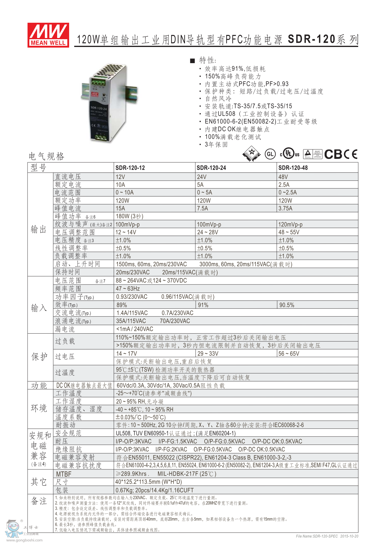 • 可提供150%峰值負(fù)載輸出(SDR-960為130%)