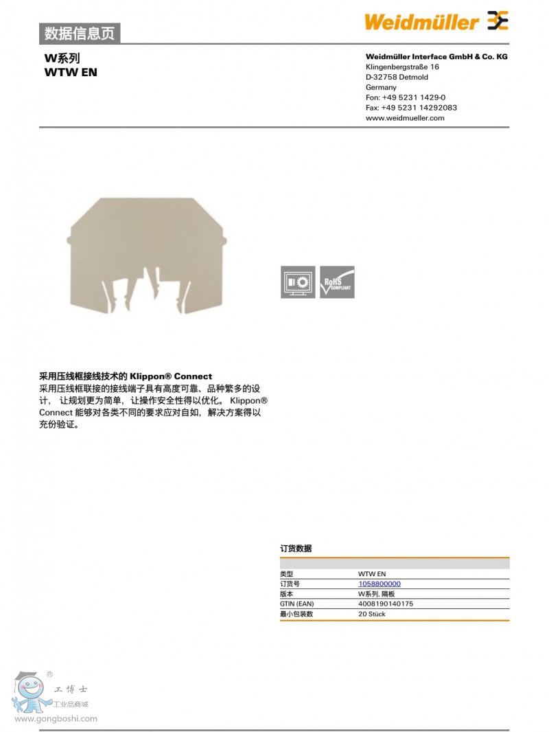 魏德米勒W系列隔板  WTW EN     訂貨號(hào):1058800000