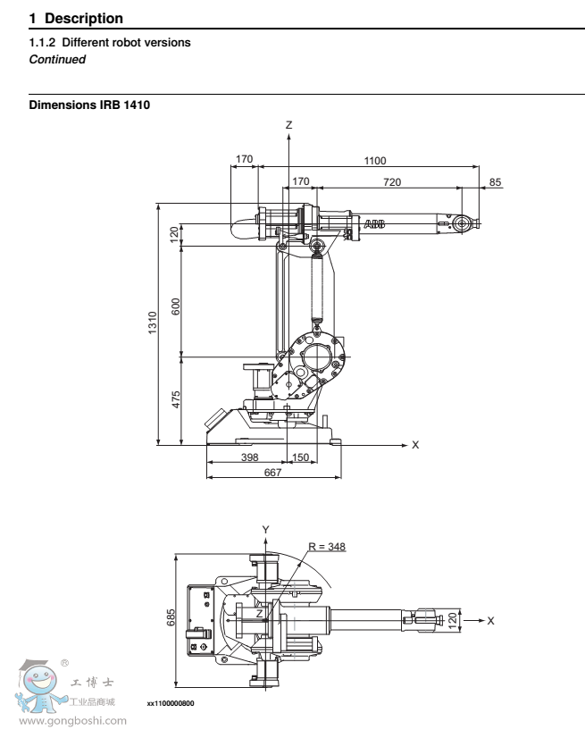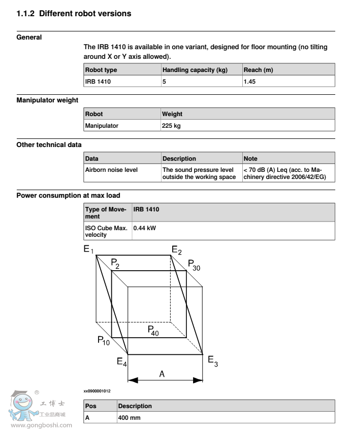 Continuesonnextpage Productspecification-IRB1410 7 3HAC026366-001Revision:D ©Copyright2004-2017ABB.Allrightsreserved.