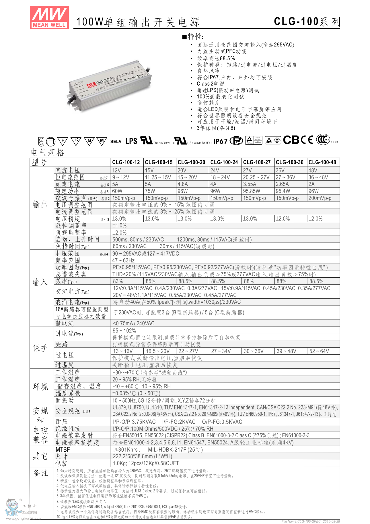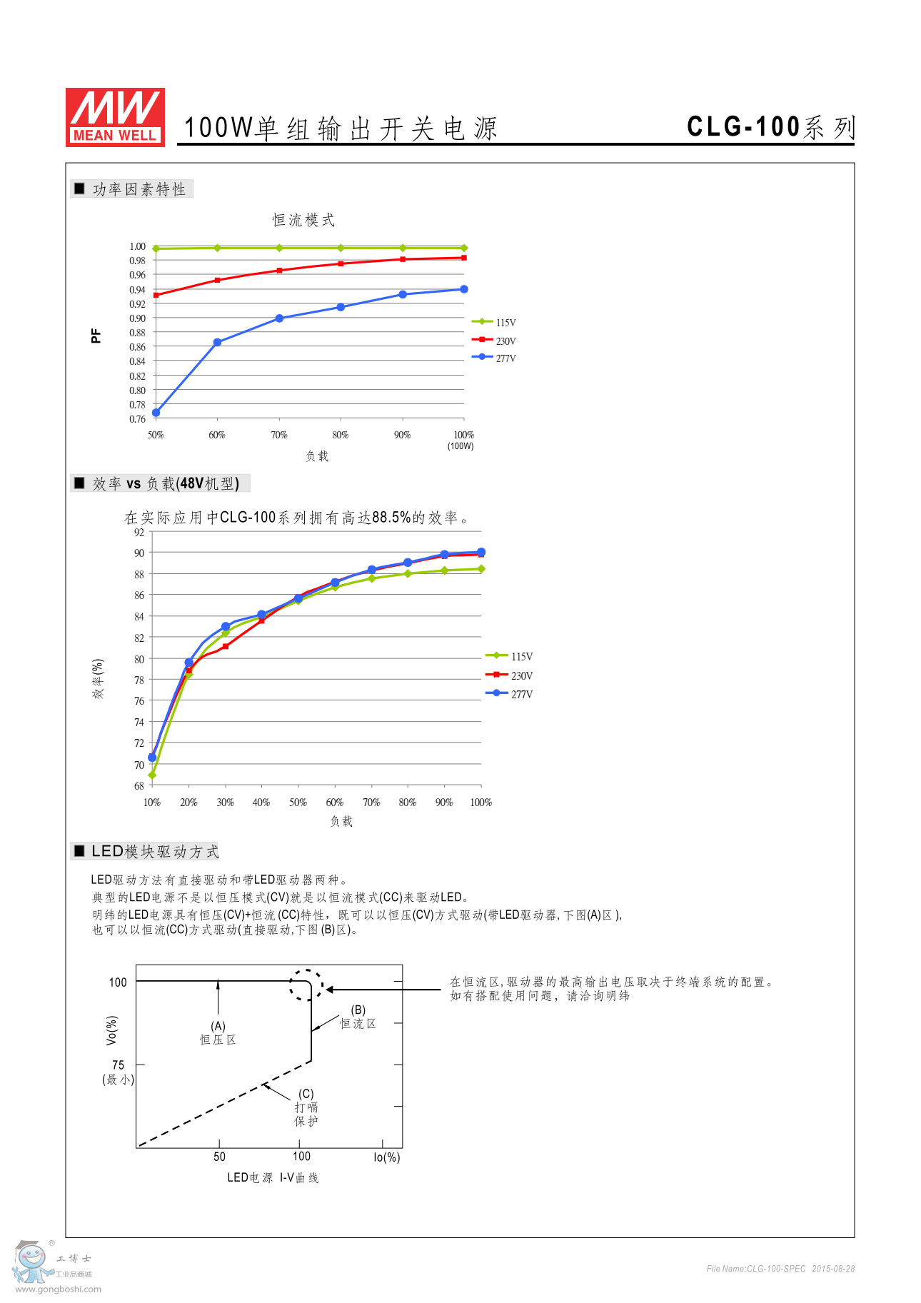 明緯CLG-100-15 100W單組輸出LED開關電源 |