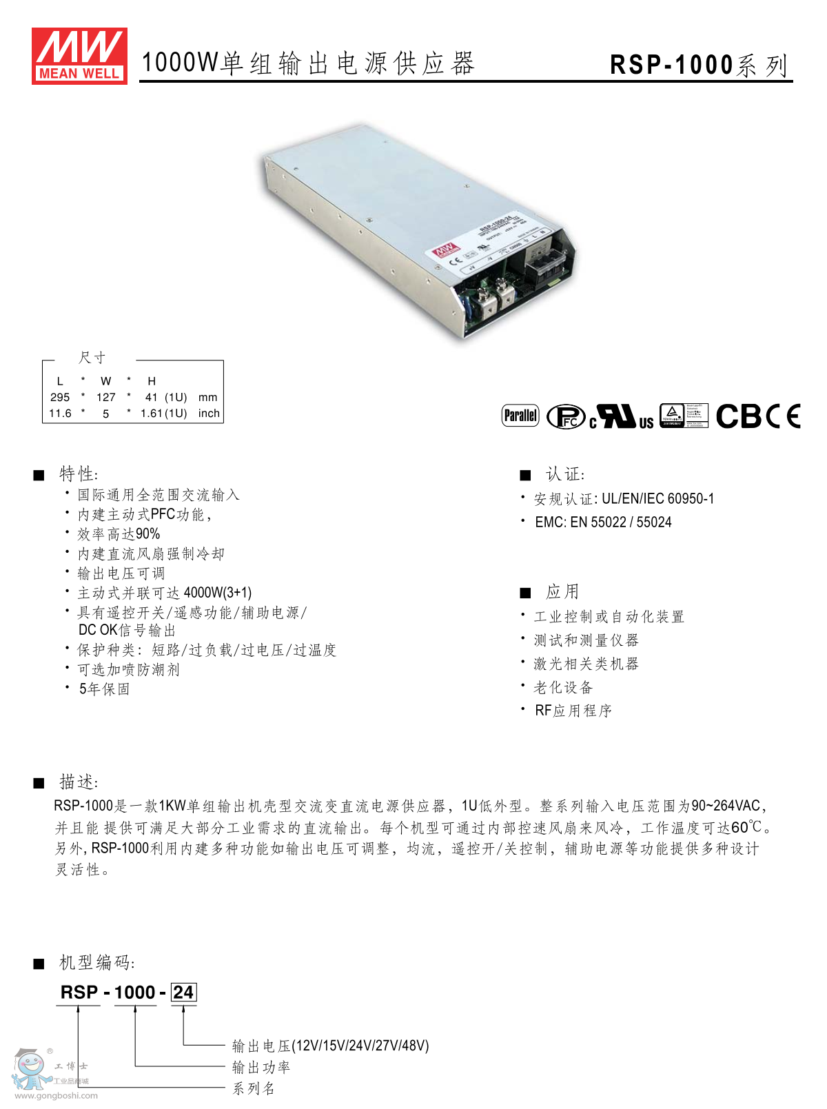 1U 低高度設計—75W~320W: 30 mm, 500W: 40.5 mm