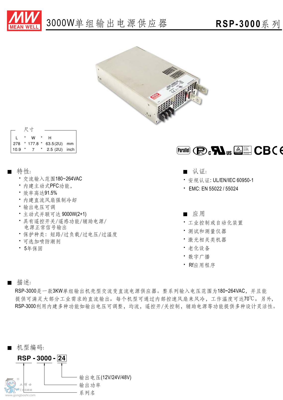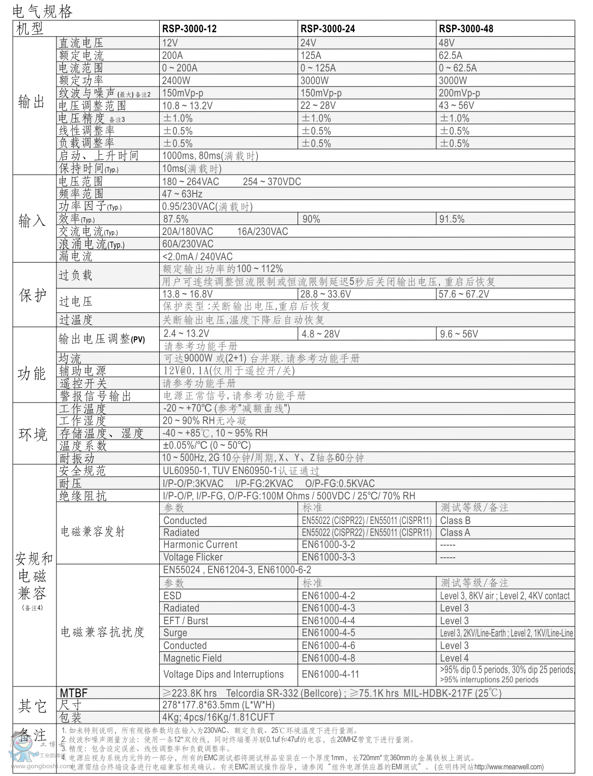 臺灣明緯電源RSP-3000-12 12V200A 主動式PFC 可并聯 |