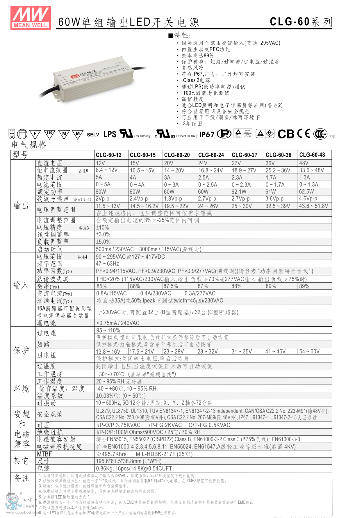 臺灣明緯LED防水電源CLG-60-36 60W36V1.7A |