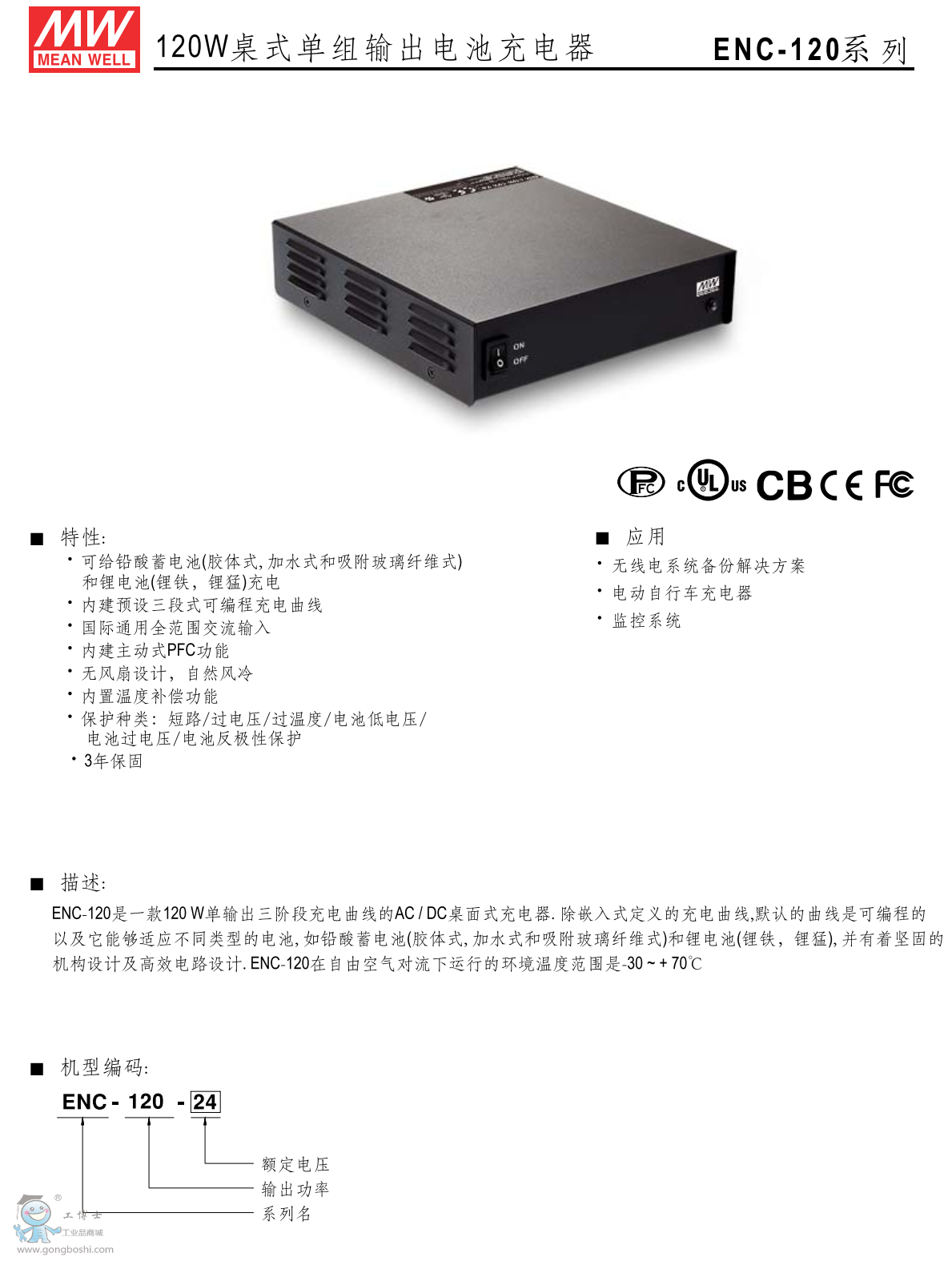 臺灣明緯ENC-120-12桌上型電池充電器 |