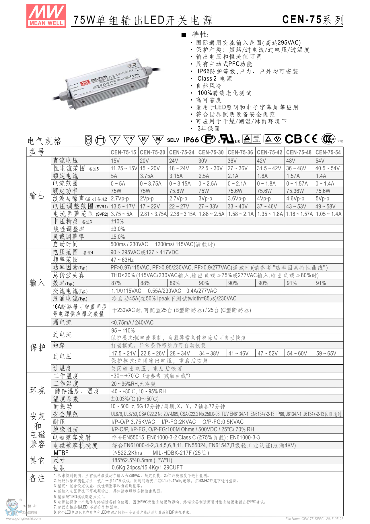 明緯CEN-100-36 100W單組輸出LED開關(guān)電源 |