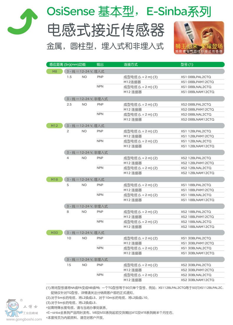 * 常規產品外形有圓柱形M8、12、18、30和方形J、F、E、C、D 形狀