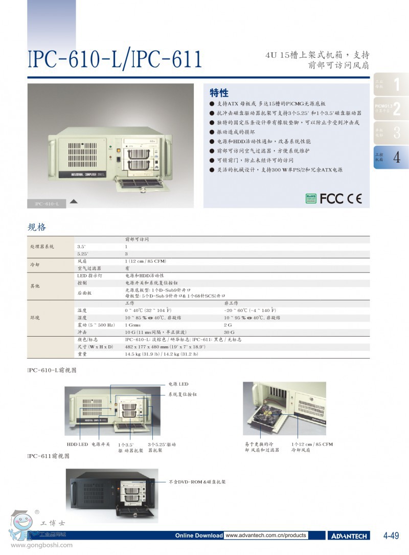 - 支持ATX 母板或 多達15槽的PICMG無源底板