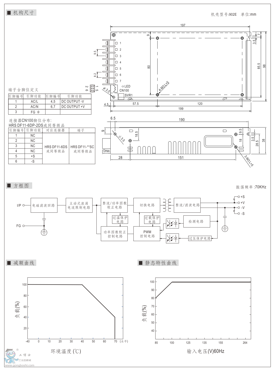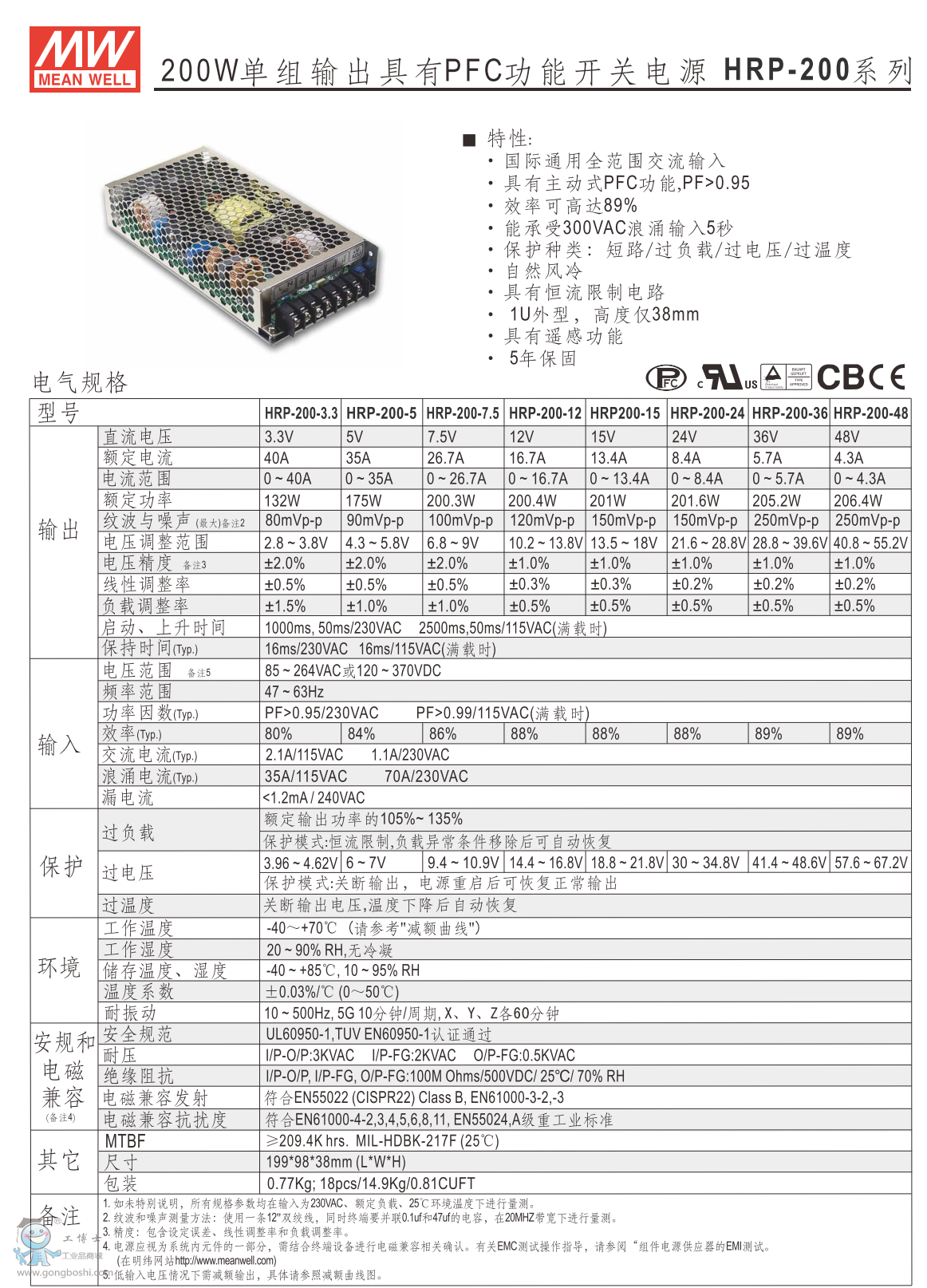 臺灣明緯HRP-200-48 48V4.3A單組輸出PFC功能開關電源 |
