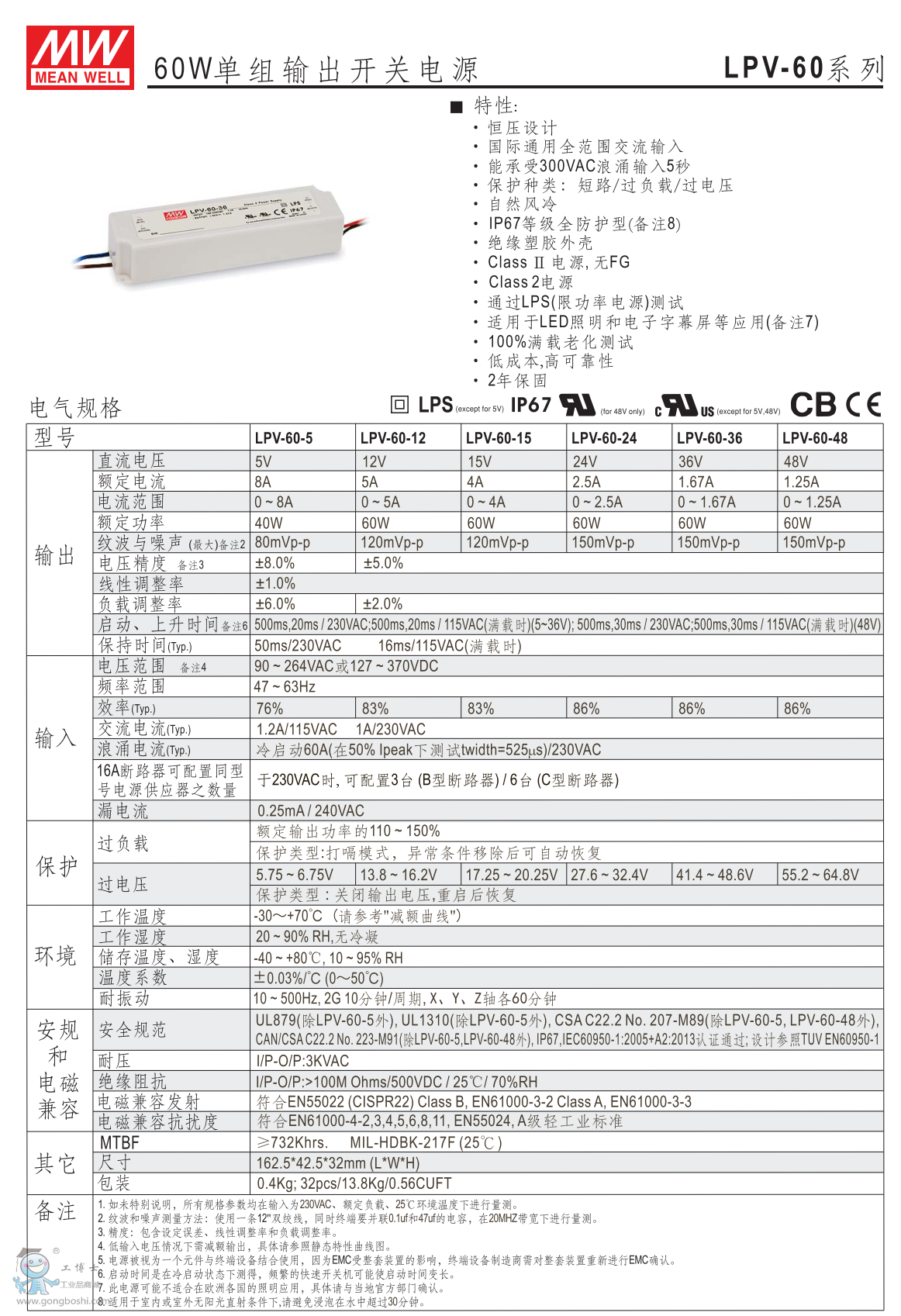 臺灣明緯LPV-60-24 24V5A 恒壓LED電源 |