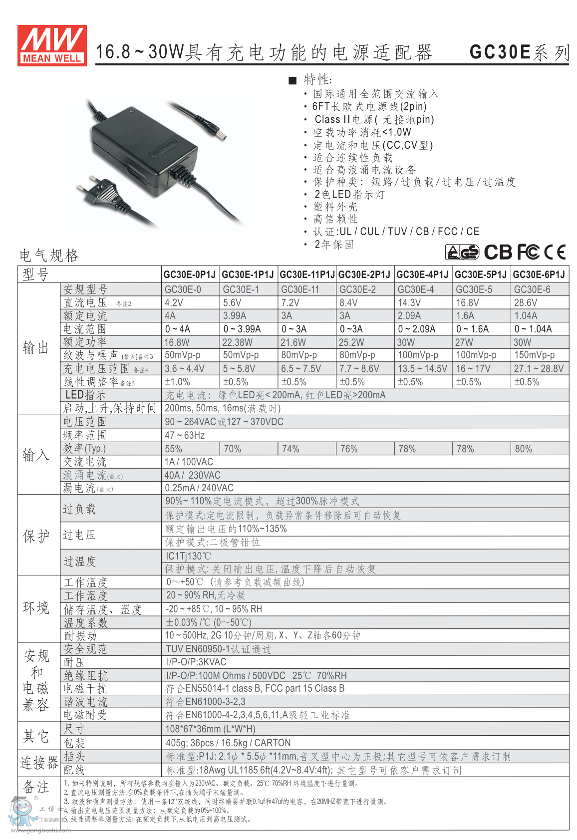 臺灣明緯GC30E-4P1J充電型電源適配器 |