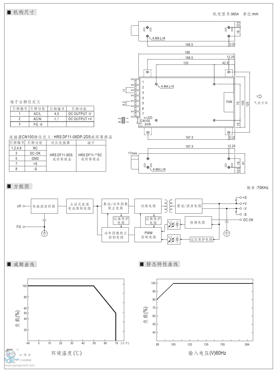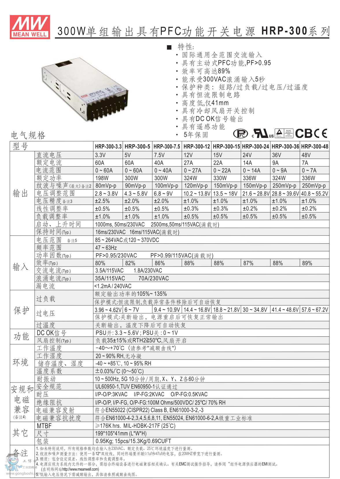 臺灣明緯HRP-300-24 24V14A單組輸出PFC功能開關電源